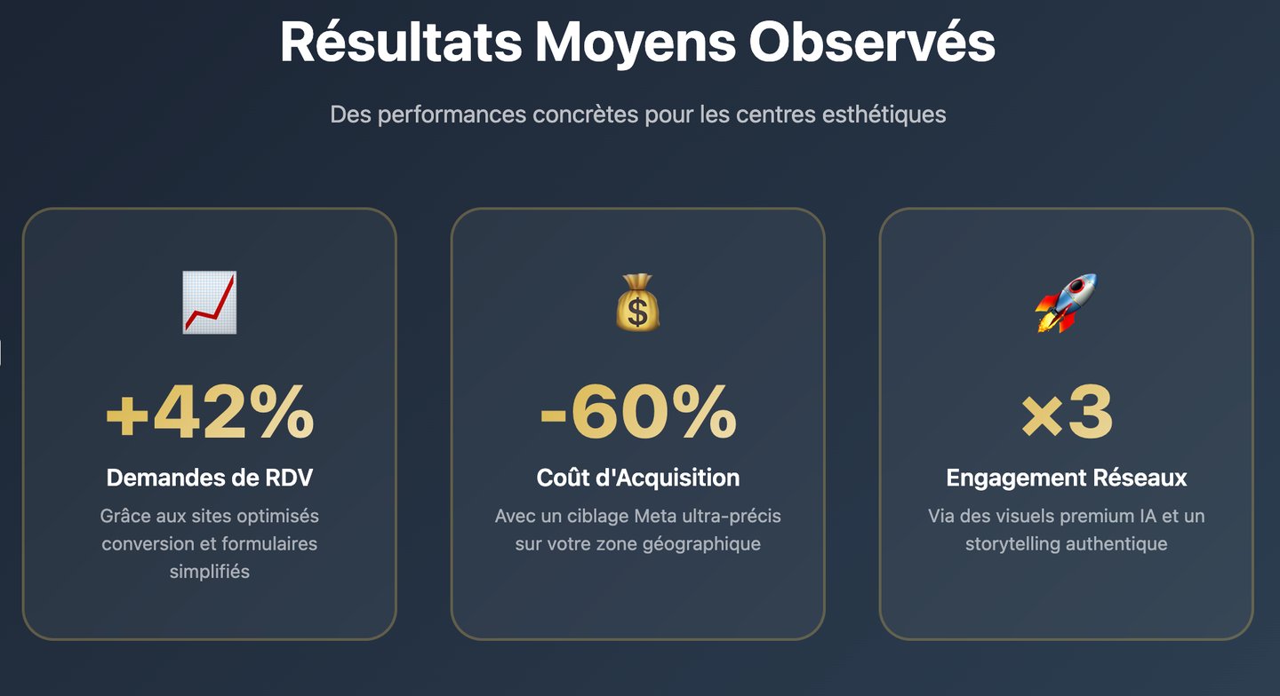 Sites Moderne Haute Conversion • Campagnes Méta Rentables • Visuels Luxe IA