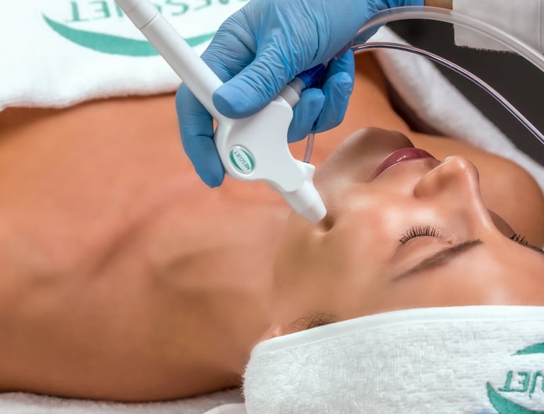 Visuels premium générés par IA + retouche experte. Photos de soins, before/after, contenus réseaux sociaux. → Cohérence visuelle professionnelle garantie