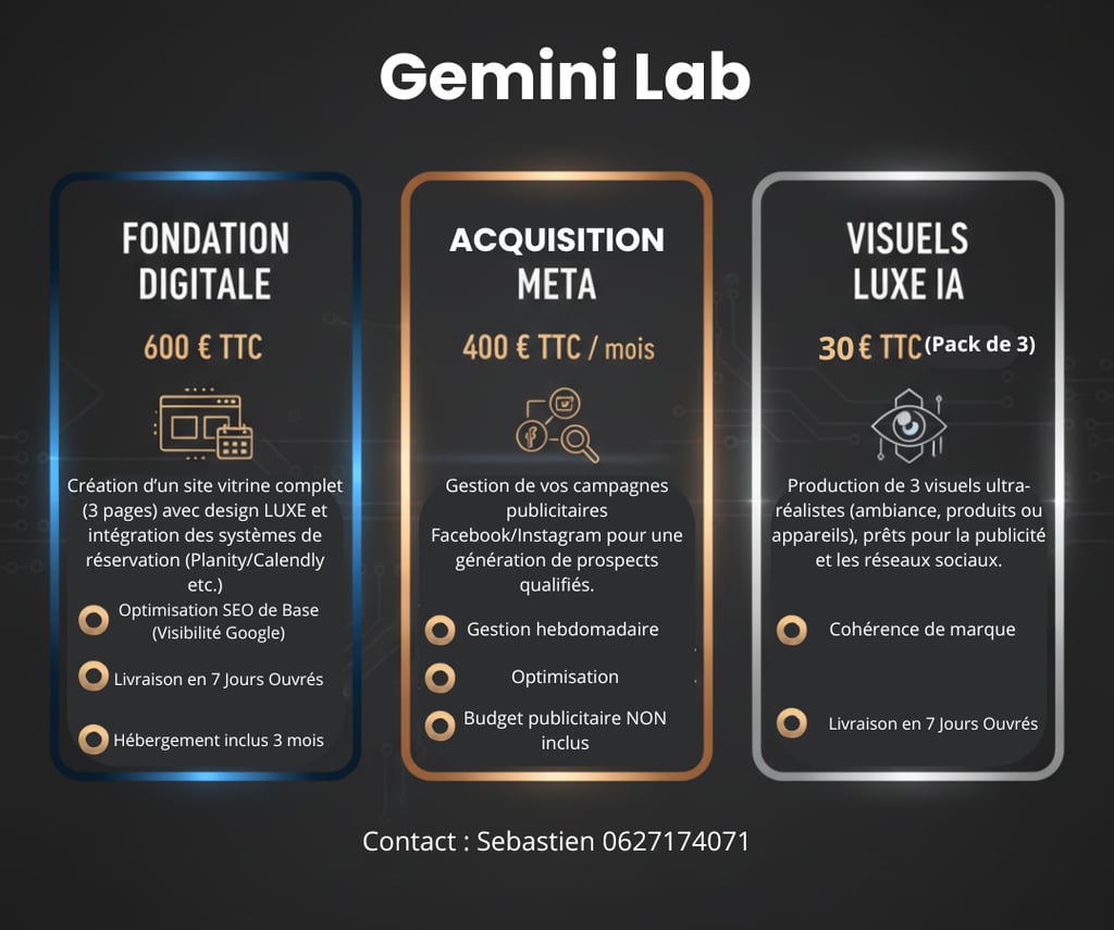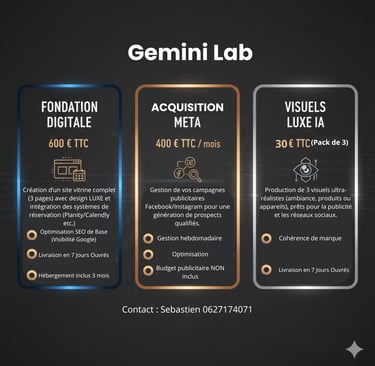 Nous créons des sites web, gérons vos pubs Meta et produisons des visuels luxe IA.